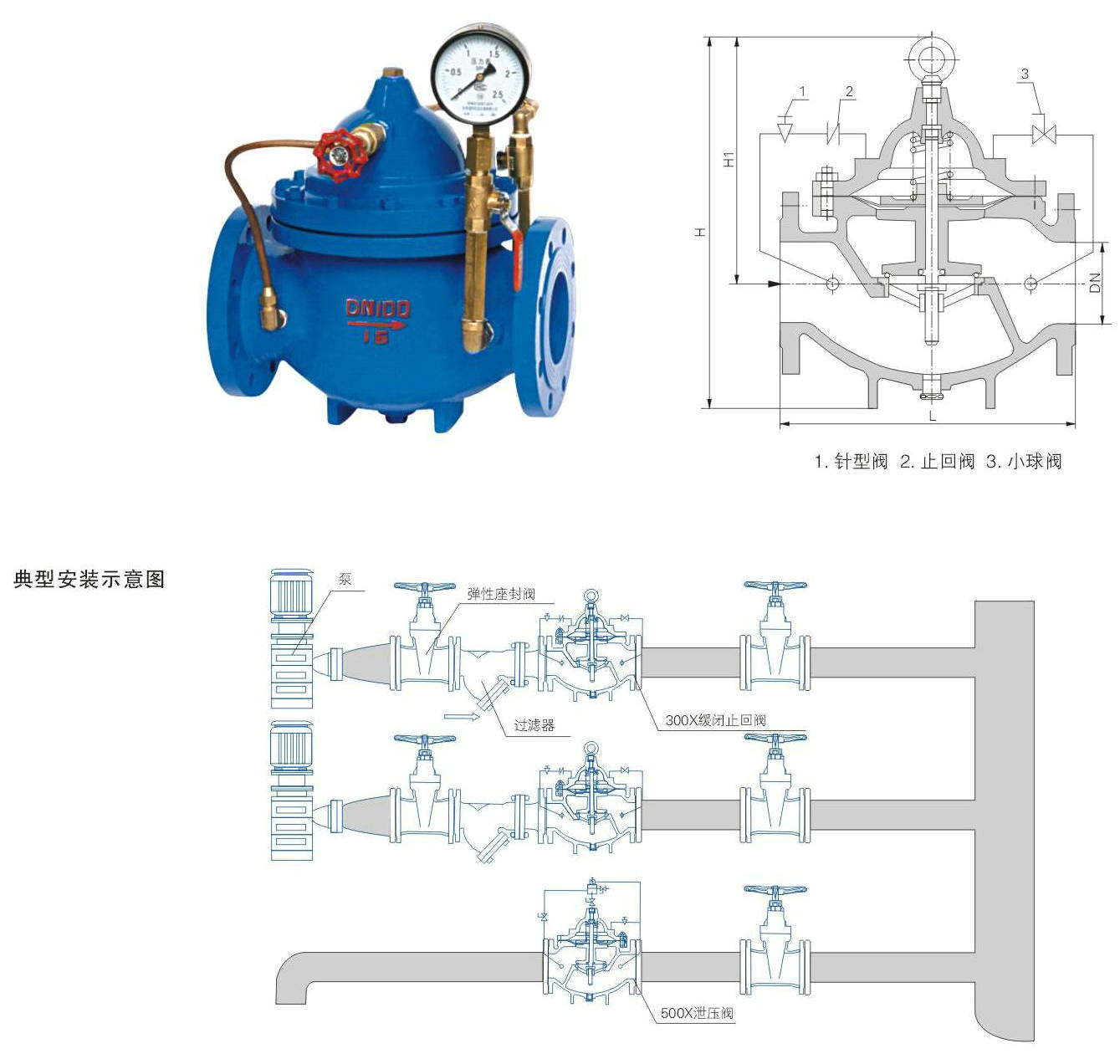 緩閉(bi)止回閥(fa)(fa)是(shi)由(you)止回閥(fa)(fa)由(you)主(zhu)閥(fa)(fa)、單向閥(fa)(fa)、針閥(fa)(fa)、球(qiu)閥(fa)(fa)、微(wei)形(xing)過(guo)(guo)(guo)濾器和(he)壓(ya)力(li)(li)表組成水(shui)(shui)力(li)(li)控制(zhi)(zhi)閥(fa)(fa)接管(guan)系(xi)統。利用(yong)(yong)水(shui)(shui)力(li)(li)自動操作,可使主(zhu)閥(fa)(fa)得到最佳的開啟和(he)關閉(bi)速(su)度。防止水(shui)(shui)鍾水(shui)(shui)擊的產生(sheng),以達到緩閉(bi)消聲的效(xiao)果。當閥(fa)(fa)門(men)從進(jin)(jin)口端給水(shui)(shui)時(shi),水(shui)(shui)通過(guo)(guo)(guo)微(wei)型過(guo)(guo)(guo)濾器、針閥(fa)(fa)、單向閥(fa)(fa)進(jin)(jin)入主(zhu)閥(fa)(fa)控制(zhi)(zhi)室(shi)(shi),再經過(guo)(guo)(guo)球(qiu)閥(fa)(fa)排(pai)水(shui)(shui)至(zhi)下游。因為針閥(fa)(fa)開度小(xiao)于球(qiu)閥(fa)(fa)開度,即(ji)主(zhu)閥(fa)(fa)控制(zhi)(zhi)室(shi)(shi)的排(pai)水(shui)(shui)速(su)度大于進(jin)(jin)水(shui)(shui)速(su)度,因此(ci)(ci)控制(zhi)(zhi)室(shi)(shi)壓(ya)力(li)(li)降低,作用(yong)(yong)于主(zhu)閥(fa)(fa)盤下端的進(jin)(jin)口壓(ya)力(li)(li)打開主(zhu)閥(fa)(fa)向下游供(gong)(gong)水(shui)(shui)。當管(guan)道停止供(gong)(gong)水(shui)(shui)時(shi),若下游水(shui)(shui)開始回流(liu),一部分回流(liu)水(shui)(shui)經球(qiu)閥(fa)(fa)進(jin)(jin)入主(zhu)控制(zhi)(zhi)室(shi)(shi),由(you)于單向閥(fa)(fa)作用(yong)(yong),回流(liu)水(shui)(shui)不(bu)能從主(zhu)控制(zhi)(zhi)室(shi)(shi)流(liu)出,引起(qi)主(zhu)控制(zhi)(zhi)室(shi)(shi)逐漸升壓(ya),緩緩關閉(bi)主(zhu)閥(fa)(fa)本產品利用(yong)(yong)水(shui)(shui)力(li)(li)自力(li)(li)控制(zhi)(zhi),不(bu)需要其它裝置和(he)能源,保養簡便(bian),開啟及緩閉(bi)平穩。此(ci)(ci)閥(fa)(fa)門(men)產品廣泛(fan)用(yong)(yong)于高層建筑、生(sheng)活(huo)區等供(gong)(gong)水(shui)(shui)管(guan)網系(xi)統及城市供(gong)(gong)水(shui)(shui)工程。